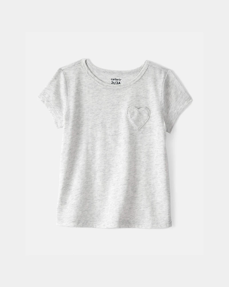 Toddler Girl Heart Pocket Top - Grey