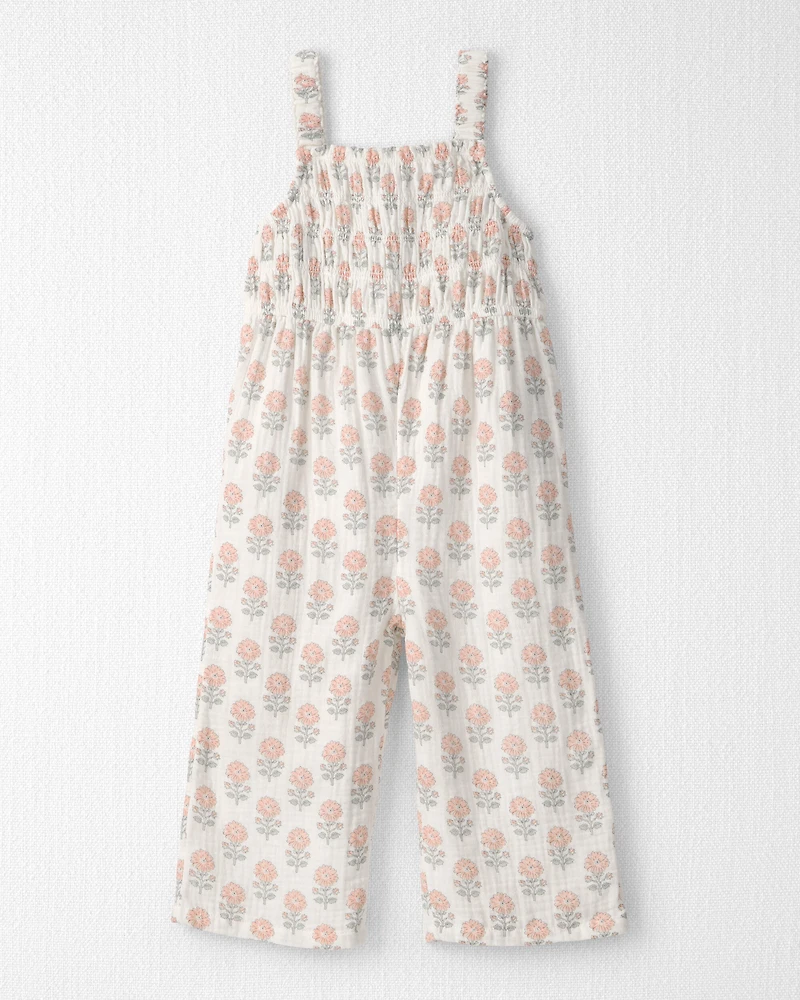 Toddler Girl Organic Cotton Gauze Jumpsuit in Rosebud Petal Print
