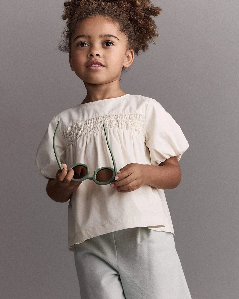 Toddler Girl Smocked Bubble Sleeve Top - Cream