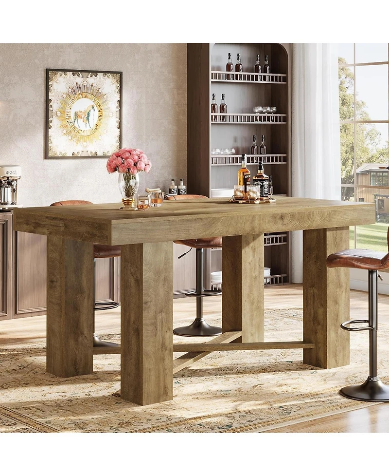 Featuring a spacious rectangular surface, counter-height design, and clean farmhouse-inspired lines, this bar table combines practical functionality with a modern yet rustic appearance.Built with a reinforced structure, the table supports up to 350 lbs, providing dependable stability for meals, drinks, and everyday household items.