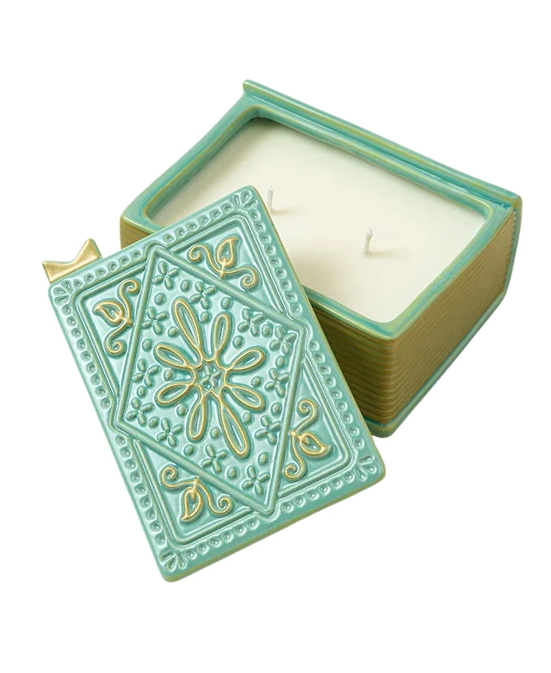 This ceramic “book” opens to reveal a warm spiced tea–scented candle. Gold-stamped details like “Ex Libris” inside the lid and “The End” at the bottom of the base add a literary wink for those who read to the very last word. Once the flame burns out, the book lives on as a decorative container, ready to hold small items.