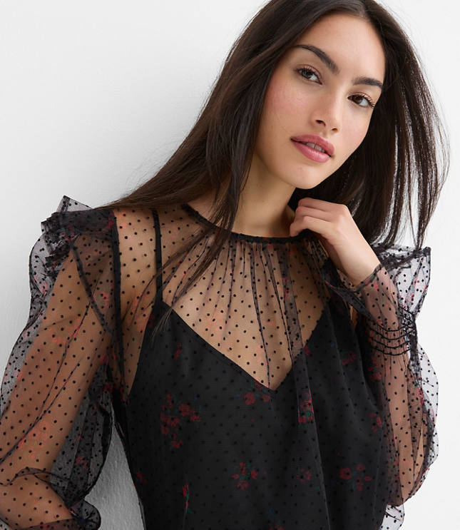 Velvet Dot Tulle Floral Cami Blouse in Bloomington, MN