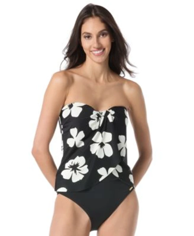 Vince Camuto Womens Floral Print Tankini Top High Waist Bottoms