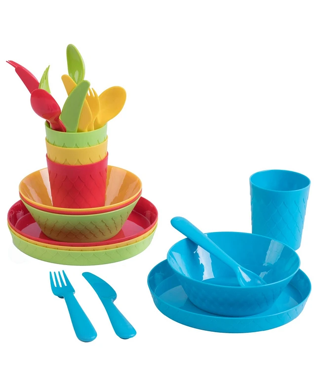 Vintiquewise 24-Piece Kids Dinnerware Set Plastic 4 Plates, 4 Bowls, 4 Cups, 4 Forks, 4 Knives, and 4 Spoons
