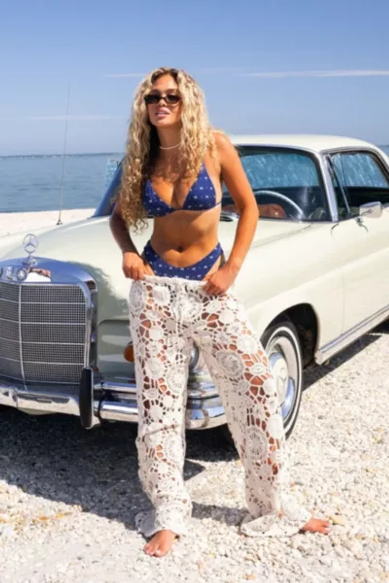 Cooper is an elongated triangle top with adjustable shoulder straps, contrast binding and a tie-back closure, a more comfortable alternative to traditional halter strings. Designed to enhance curves while flaunting subtle side exposure, it's an alluring spin on a classic bikini.