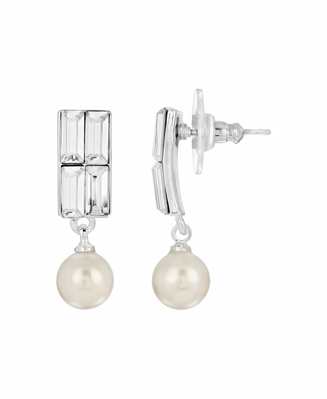 2028 Silver-Tone Crystal and Imitation Pearl Linear Earrings