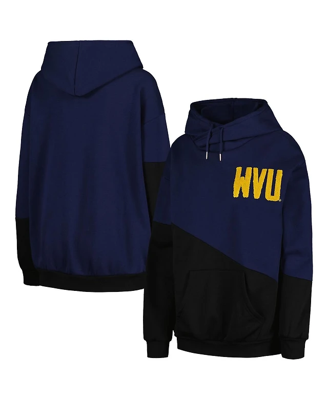 Women's Gameday Couture Navy, Black West Virginia Mountaineers Matchmaker Diagonal Cowl Pullover Hoodie