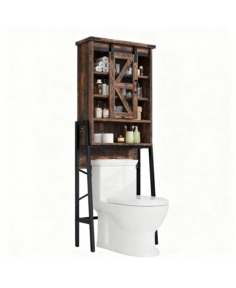 Yigii Adjustable Shelves Over Toilet Cabinet with Barn Door