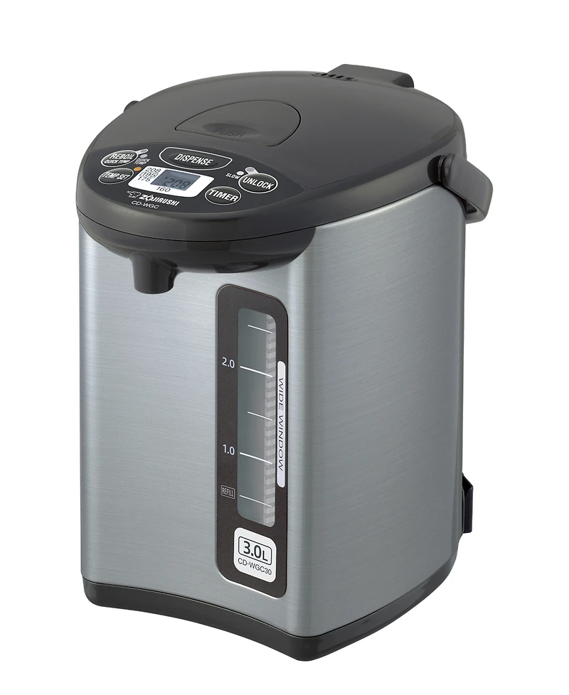 Precision heating meets everyday convenience with this Zojirushi micom water boiler, featuring a micro computerized temperature control system for accurate results. Four keep-warm settings support tea and coffee brewing, while quick-heat mode reaches the desired degree without boiling to save time and energy. Model number: Cd-WGC30TS.