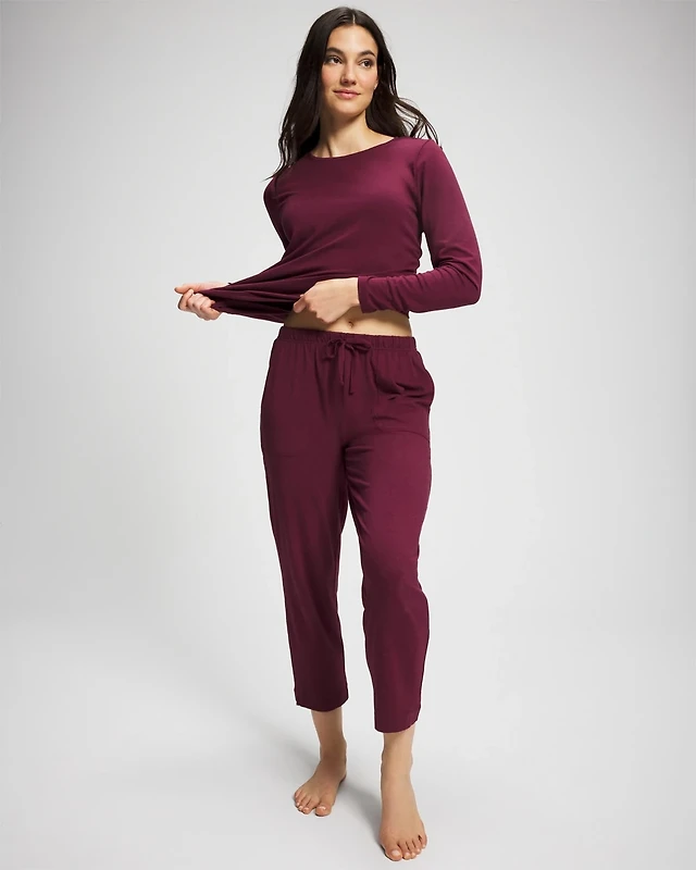 Long-Sleeve Notch Collar Pajama Top