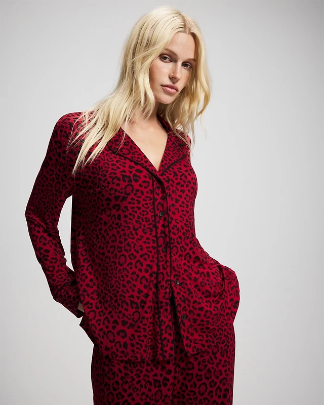 Long-Sleeve Notch Collar Pajama Top