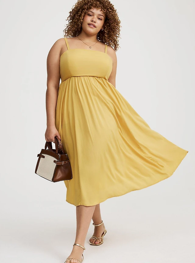 Tea Length Woven Jacquard Lace Trim Cami Dress