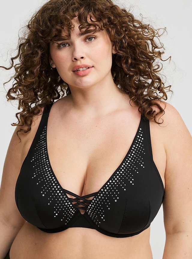 XO Plunge Push Up High Apex Diamante Straight Back Bra