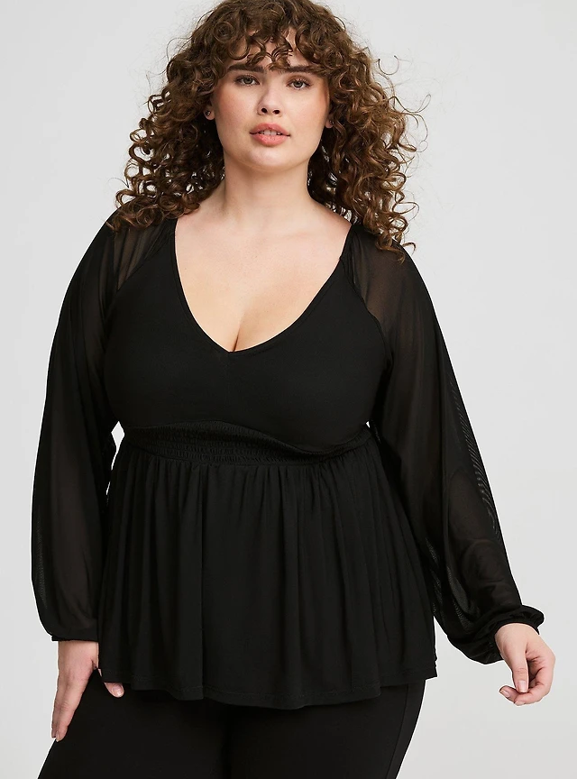 Peplum Challis Sweetheart Flutter Sleeve Top