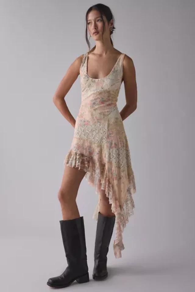 Kimchi Blue Lost Time Asymmetric Ruffle Slip Midi Dress