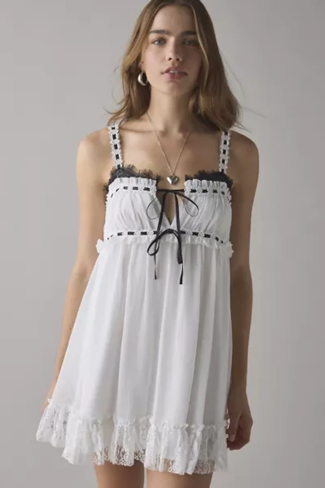 Kimchi Blue Adelaide Lace + Ribbon Trim Babydoll Mini Dress