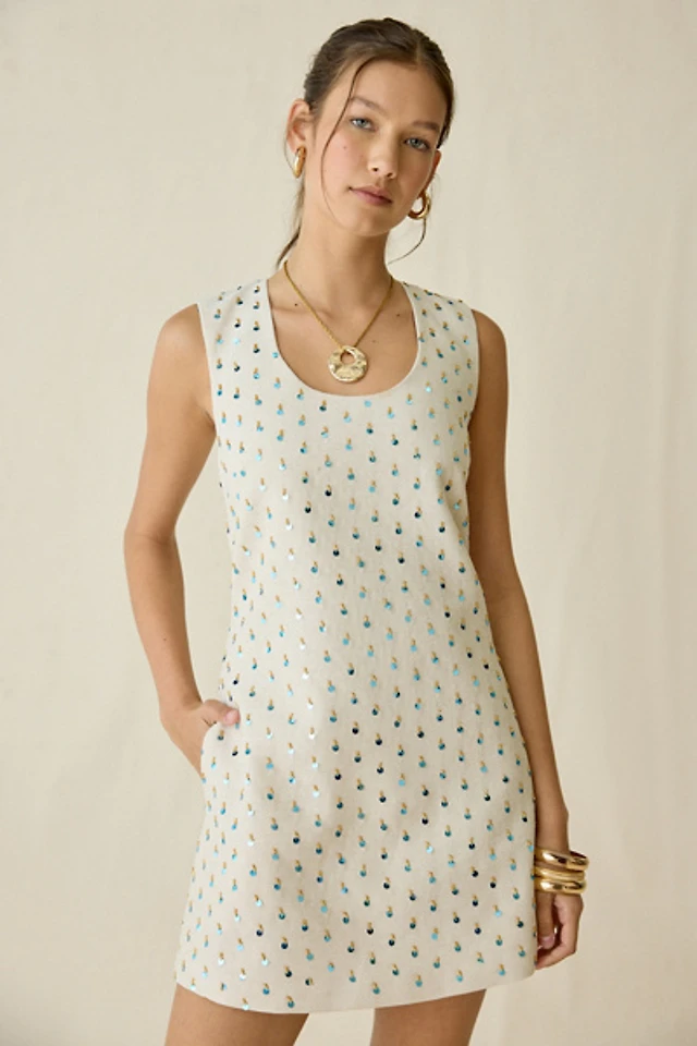 Maude Club Jardin Sequin Beaded Shift Mini Dress