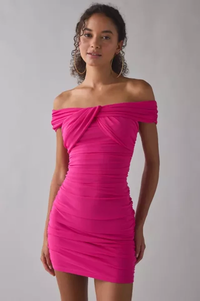 Lulus Harper Off-The-Shoulder Ruched Mesh Mini Dress