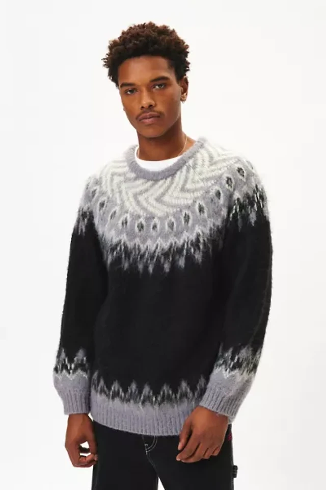 Manastash Aberdeen Fuzzy Patterned Knit Crew Neck Sweater
