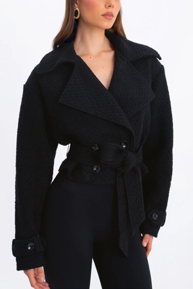 Miss Circle Faye Wool Blend Faux Fur Collared Coat