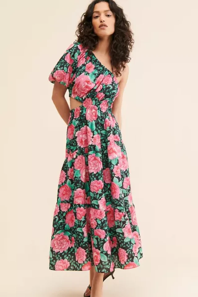 Motel Maribel Asymmetric One-Shoulder Polka Dot Mini Dress