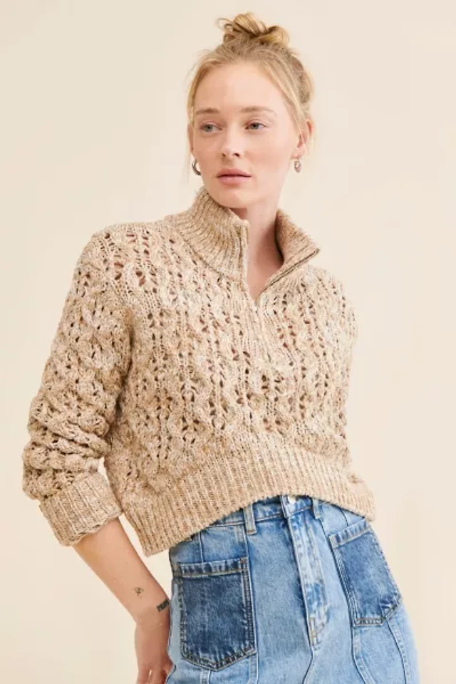 BDG Noelle Patterned Knit Mockneck Pullover Sweater
