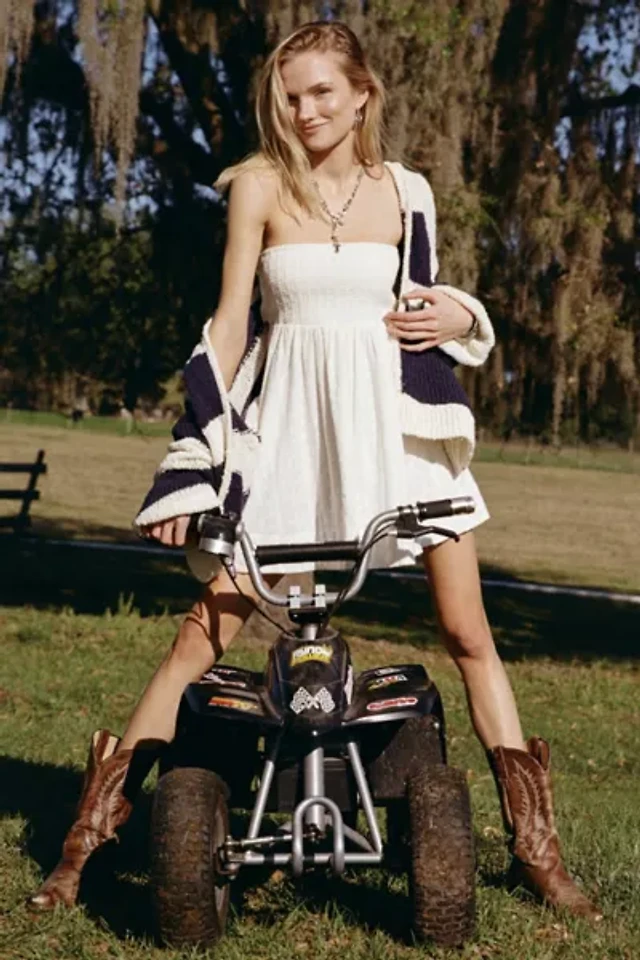 BDG Leah Pleated Open-Back Drop Waist Mini Dress