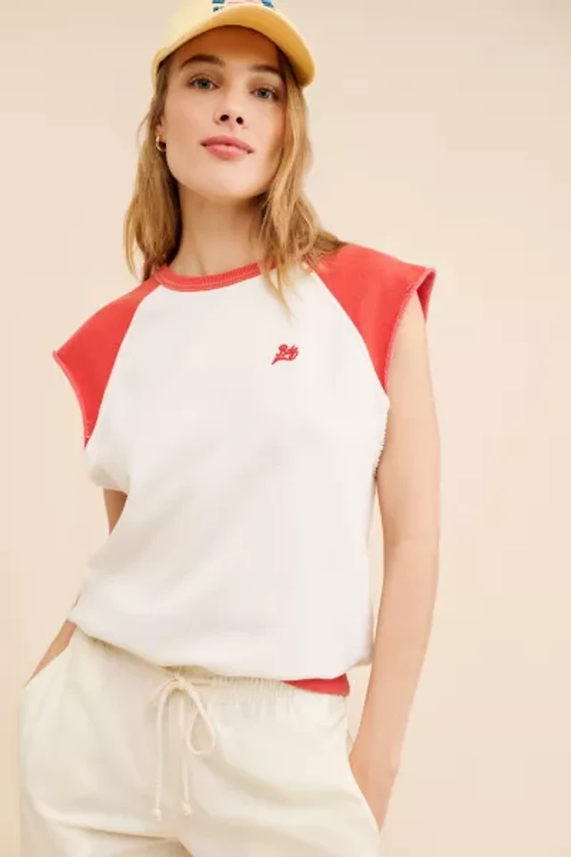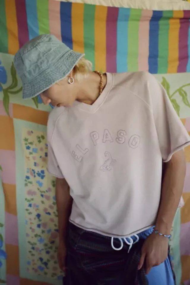 BDG Perry Embroidered Cropped Raglan Short Sleeve Sweatshirt