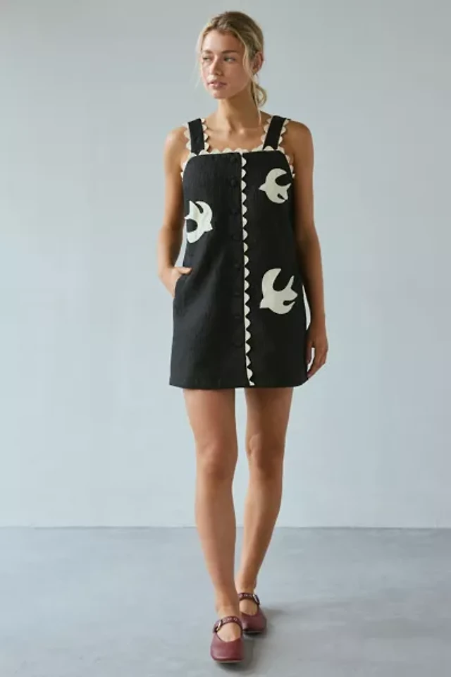 Sister Jane Swallow Hearts Applique Button-Front Mini Dress