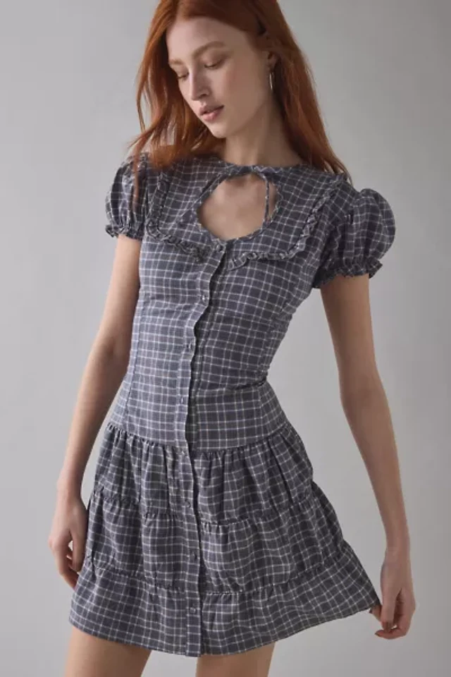 Daisy Street Angel Drop Waist Button-Front Plaid Mini Dress