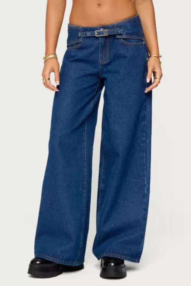 Edikted Edna Floral Embroidered Low Rise Jeans