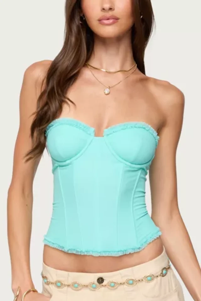 Edikted Elaia Asymmetric Strapless Lace Mini Dress