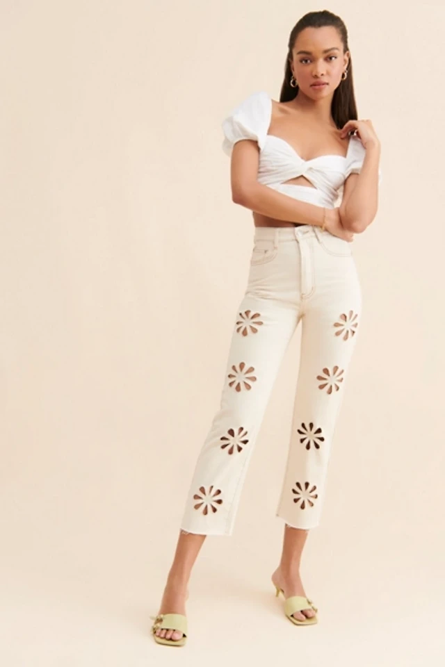Glamorous Floral Cutout Jean