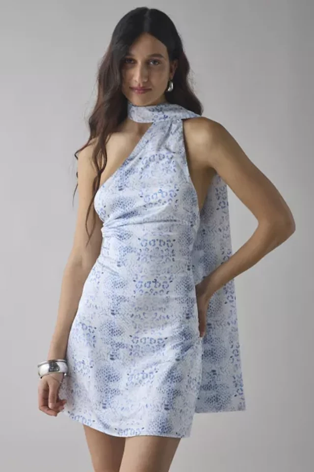 Glamorous Halter-Tie Off-The-Shoulder Flutter Sleeve Mini Dress