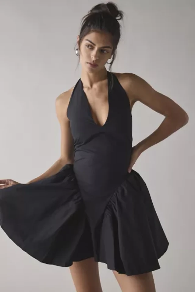 Glamorous High-Neck Drop Waist Bubble Hem Mini Dress