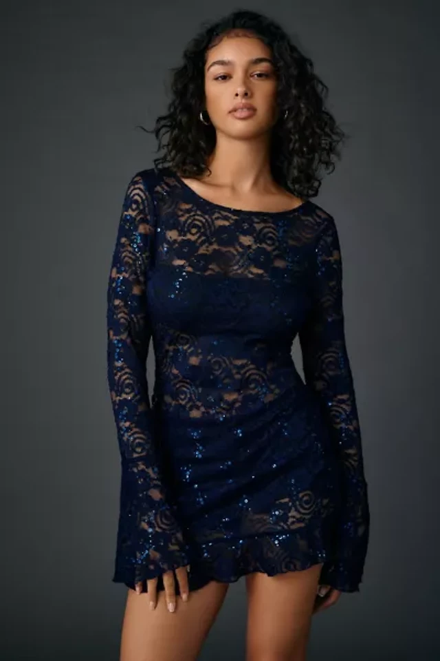 UO Over The Horizon Chiffon Fit-And-Flare Mini Dress