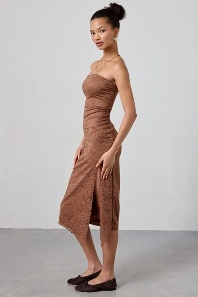 UO Suky Plaid Mesh Lace Trim Slip Midi Skirt