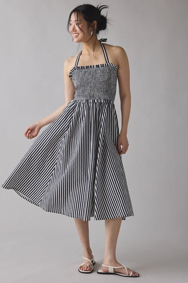 UO Selene Smocked Square Neck Ruffle Midi Dress