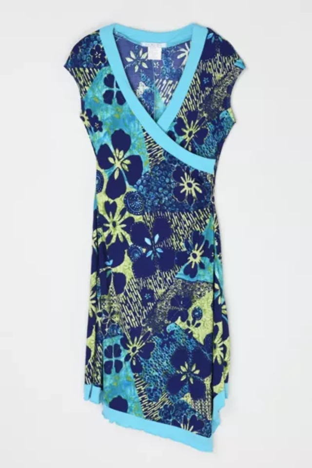Vintage Y2k Aqua Patterned Midi Dress