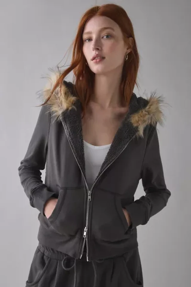 Out From Under Bundle Up Faux Fur Trim Zip-Up Hoodie Sweatshirt