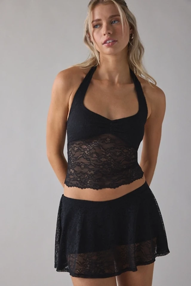 Out From Under Havana Semi-Sheer Lace Halter Top + Mini Skort 2-Piece Set
