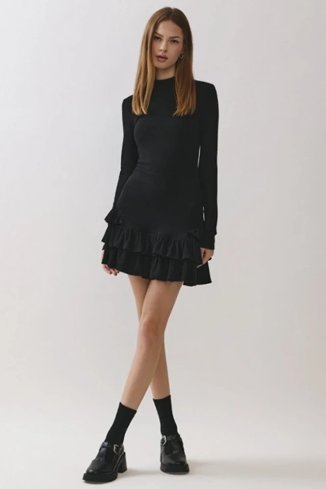 Personal Code Daniella Ribbed Mock Neck Ruffle Mini Dress